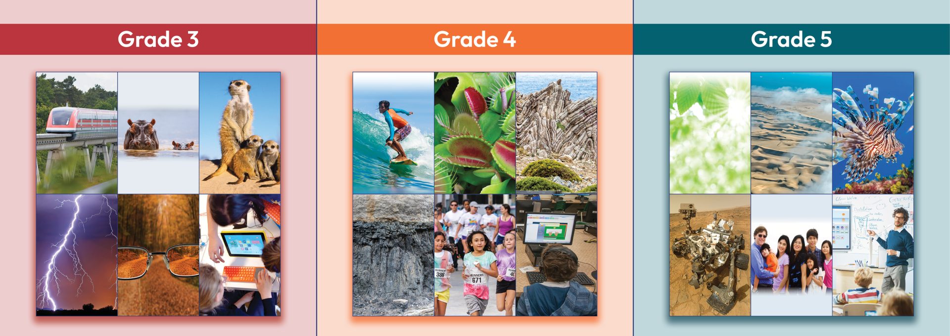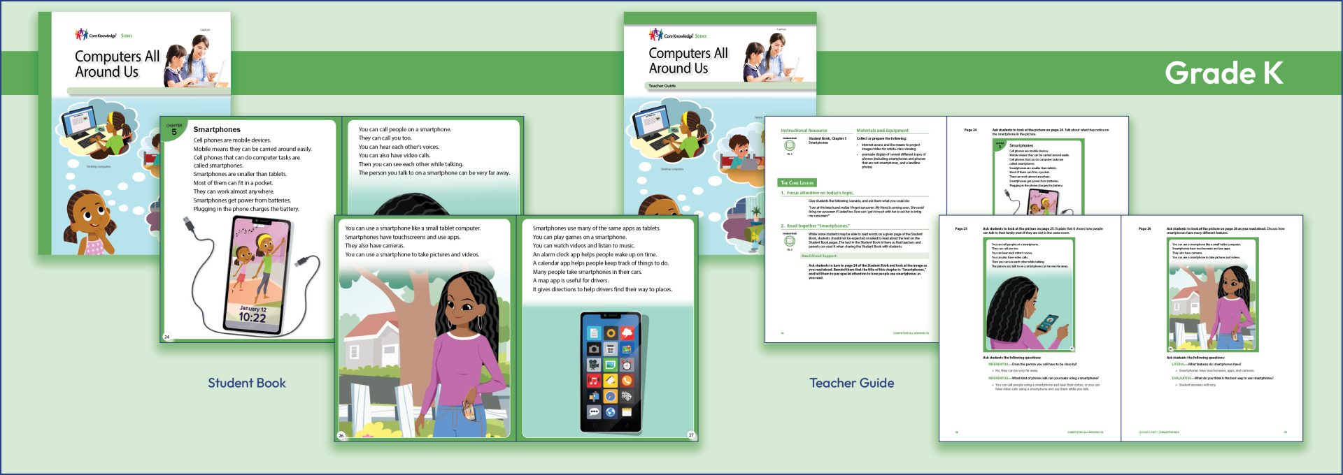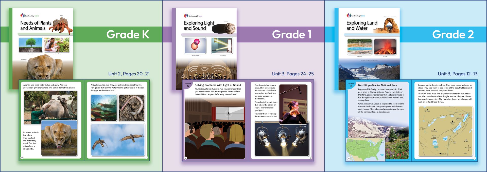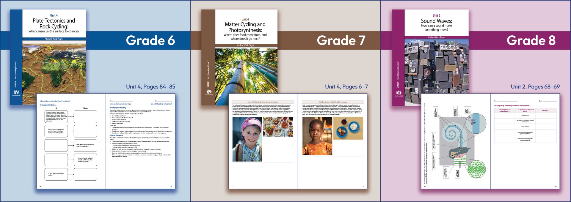 The Student Books, which are designed as read-alouds, offer engagingly written and richly illustrated text. Reading takes place as part of the flow of the unit laid out in the Teacher Guide. Each Student Book includes color photographs and illustrations and is intended to be read as a whole class activity across the instructional sequence of lessons.
