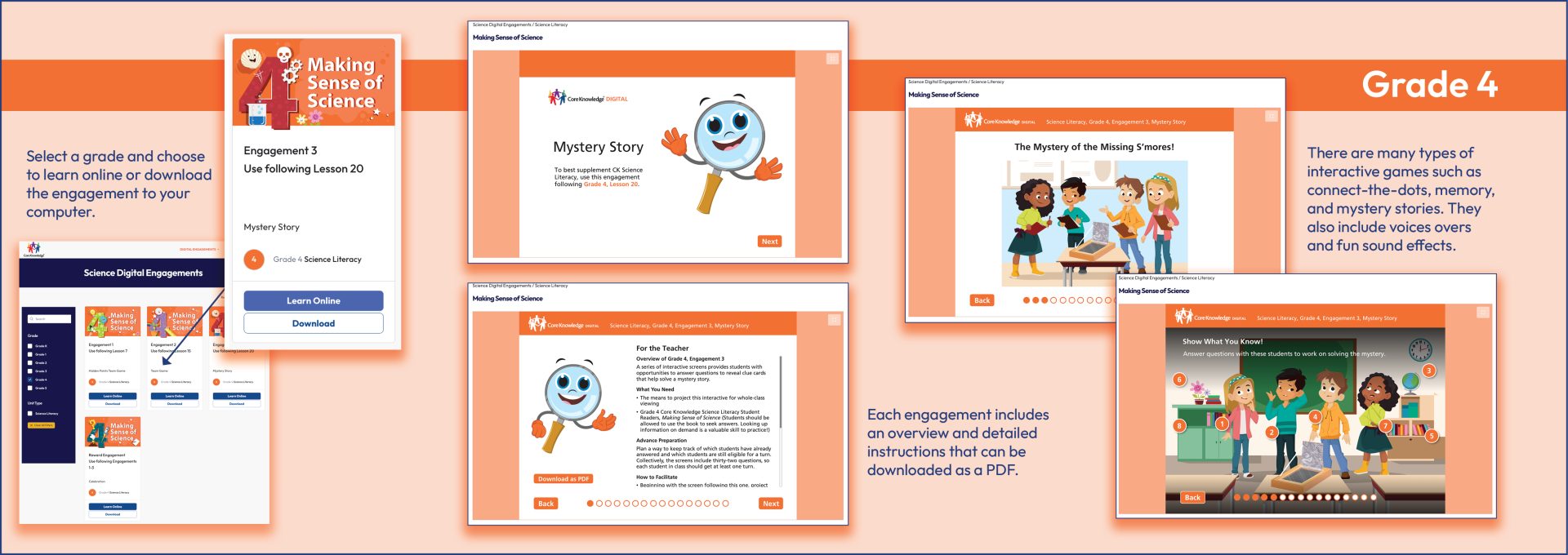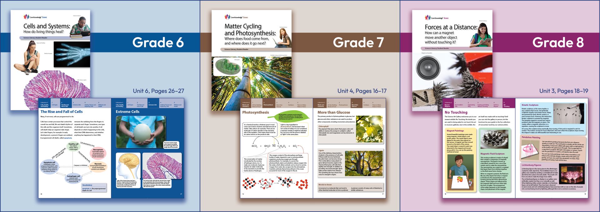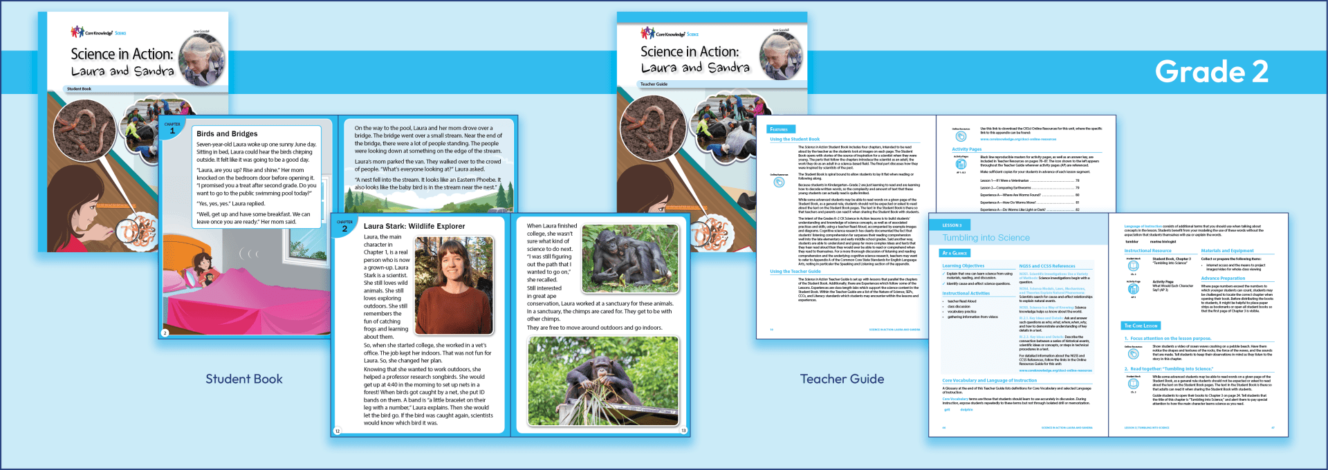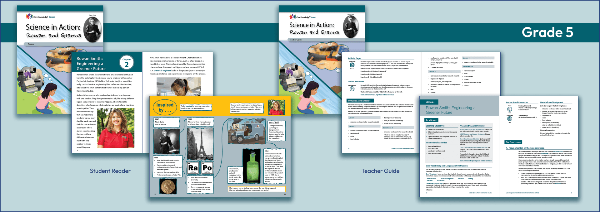 Each unit of the program is accompanied by a comprehensive Teacher Guide and a wealth of Online Resources. Also included are one-two-minute videos, accessed from the Core Knowledge Online Resources, that will allow students to see the real person describe in the Science in Action Biographies.
